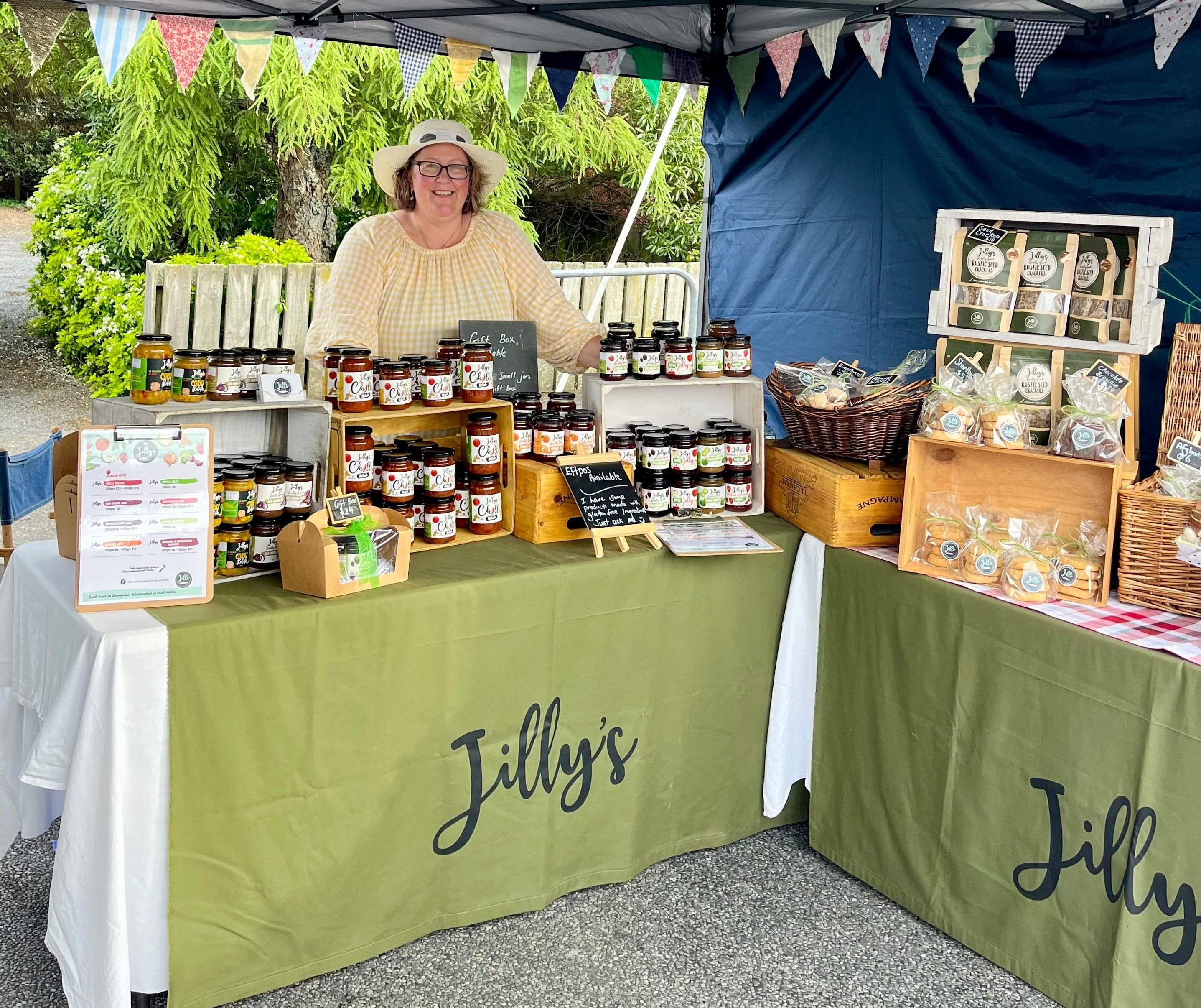 I can be found in person at the Whanganui River Traders Market most Saturday’s with my Jilly's range of really good jams and relishes, along with freshly made biscuits, and my highly addictive, award winning seed crackers.